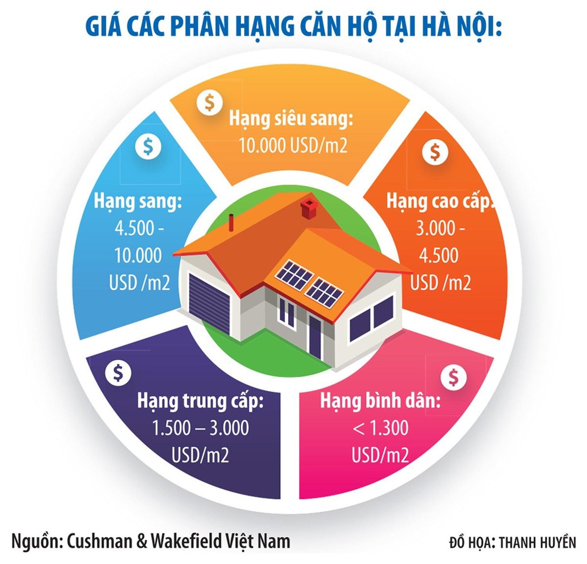 Trong đó, căn hộ trung cấp chiếm 84% giỏ hàng, phân khúc bình dân 12%, cao cấp 3%, không có nguồn cung cho phân khúc sang và siêu sang. Một số dự án điển hình là Hà Nội Melody Residence, Khải Sơn City, Grand Sunlake, MHD Trung Van.