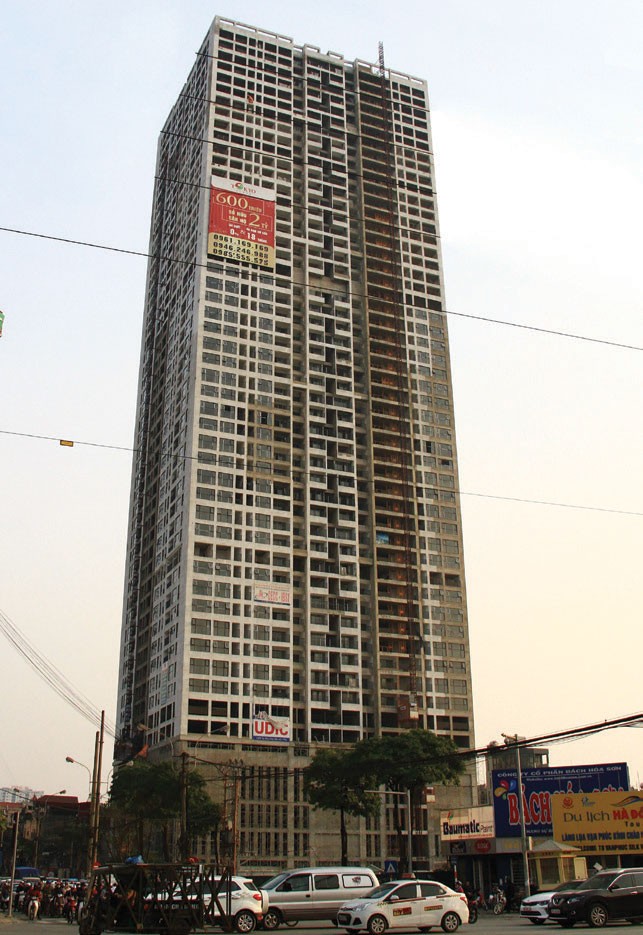 Cũng tại Hà Nội, tòa CT3 cao 45 tầng, thuộc Tổ hợp căn hộ The Pride từng được quảng cáo là dự án tòa tháp cao nhất quận Hà Đông. Tuy nhiên, đến năm 2013, thời điểm dự án cam kết hoàn thành, tòa CT3 mới chỉ xây xong phần đế công trình và bị “đắp chiếu” trong thời gian dài. Đến khi tái khởi động trở lại, tòa CT3 được đổi sang HP Landmark Tower.