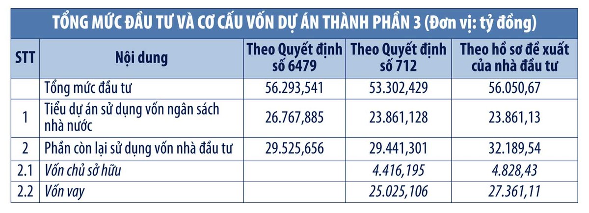 Điều đáng nói là, giá đề xuất của liên danh nhà đầu tư trúng thầu tuy thấp hơn tổng mức đầu tư Dự án thành phần 3 được phê duyệt tại Quyết định số 6479/QĐ-UBND ngày 20/12/2023 của UBND TP. Hà Nội (56.293 tỷ đồng), nhưng cao hơn tới 2.746 tỷ đồng so với tổng mức đầu tư được UBND TP. Hà Nội phê duyệt cập nhật phương án tài chính (53.302 tỷ đồng) tại Quyết định số 712/QĐ-UBND, ngày 14/2/2025.