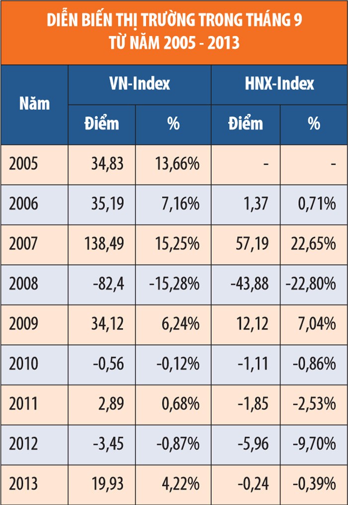 Bước sang tháng 9, có sự chia rẽ về quan điểm nhận định thị trường, vì thế, xu thế thị trường tháng 9 sẽ khó dự đoán, đặc biệt là sau kỳ nghỉ lễ dài. Khi mặt bằng giá chứng khoán không còn rẻ, nhà đầu tư mua kỳ vọng thị trường tiếp tục tăng thường không xác định đầu tư dài hạn, mà mua và bán theo sóng. Vì thế, khi thị trường tăng đến một ngưỡng nhất định, làn sóng chốt lời sẽ diễn ra. Thị trường tiếp tục tăng sẽ tương đối rủi ro cho những nhà đầu tư đến sau.