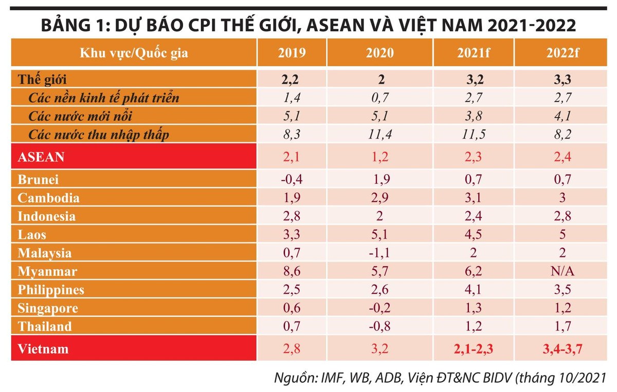 Dư địa chính sách tiền tệ hiện nay dù vẫn còn, song không nhiều trong điều kiện phải ưu tiên đảm bảo ổn định vĩ mô, kiểm soát lạm phát và đảm bảo an toàn, bền vững hệ thống ngân hàng. Áp lực lạm phát vẫn luôn tiềm ẩn trong điều kiện giá hàng hóa, dịch vụ, năng lượng còn gia tăng; một số quốc gia bắt đầu thu hẹp các gói nới lỏng định lượng và tăng lãi suất (Hàn Quốc tăng lãi suất tháng 9/2021, Cục Dự trữ Liên bang Mỹ - Fed dự kiến sẽ thu hẹp gói mua tài sản từ cuối năm 2021 và có thể tăng lãi suất vào quý III/2022…) (Xem bảng 1).