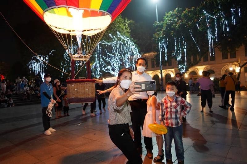 Trước đó, sáng cùng ngày, trong khuôn khổ chương trình “Du lịch Hà Nội chào 2022”, Ngày hội khinh khí cầu - “Hà Nội muôn màu” cũng được khai mạc tại khu vực vườn nhãn (quận Long Biên), thu hút đông đảo người dân và du khách đến thưởng lãm, trải nghiệm.