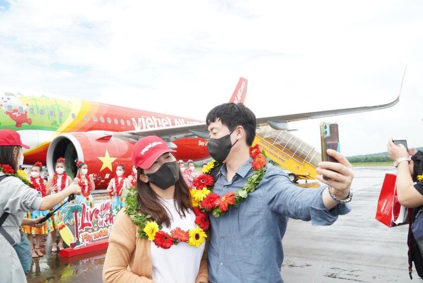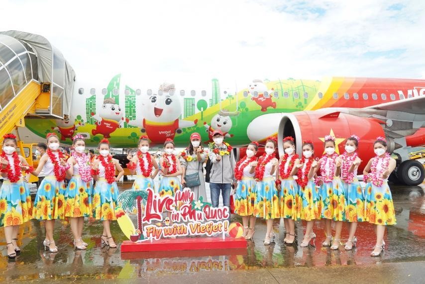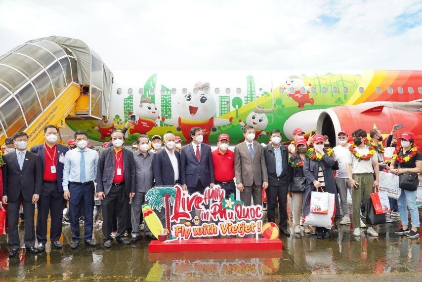 Lễ đón đoàn du khách hộ chiếu vaccine đầu tiên đến thành phố Phú Quốc được tổ chức tại Cảng hàng không quốc tế Phú Quốc với sự tham dự của Tổng Cục trưởng Tổng cục Du lịch Nguyễn Trùng Khánh, Phó Cục trưởng Cục Hàng không Việt Nam Võ Huy Cường và lãnh đạo bộ ngành, tỉnh Kiên Giang, thành phố Phú Quốc và Hãng hàng không Vietjet, Công ty Cổ phần Vinpearl và Công ty TNHH Du lịch Marketing Highland.
