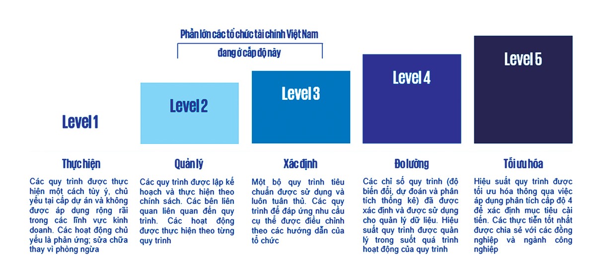 Để giải quyết những thách thức này, việc đầu tiên mà các ngân hàng tại Việt Nam cần thực hiện là nắm bắt mức độ trưởng thành trong hoạt động dữ liệu và phân tích của tổ chức. Đây là cơ sở cho việc phát triển chiến lược dữ liệu, trong đó bao gồm các hoạt động và lộ trình triển khai được lựa chọn dựa trên một khung ưu tiên hóa sáng kiến một cách phù hợp. Trong quá trình triển khai thực hiện chiến lược dữ liệu, tổ chức cần quan tâm tới yêu cầu tuân thủ từ cơ quan quản lý, đặc biệt là quy định về an ninh an toàn thông tin, quy định về bảo vệ dữ liệu cá nhân cũng như đảm bảo vai trò và trách nhiệm rõ ràng của các bên liên quan tham gia vào chuỗi giá trị của dữ liệu.