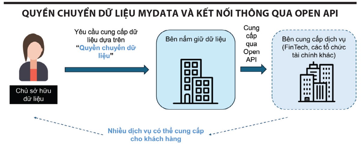 Tại Hàn Quốc, quy định về MyData, còn được gọi là “Thư ký tài chính trong lòng bàn tay” triển khai từ năm 2021, là một ví dụ điển hình về cách sử dụng dữ liệu để thúc đẩy đổi mới trong lĩnh vực tài chính. MyData là một hình thức ứng dụng Open API tiêu chuẩn hóa, nhưng được triển khai trong một khung pháp lý và vận hành đặc thù. MyData nhấn mạnh quyền kiểm soát dữ liệu cá nhân, theo đó người dùng có thể cho phép các tổ chức được cấp phép truy cập và phân tích dữ liệu của mình để cung cấp các dịch vụ như quản lý tín dụng, phân tích tiêu dùng và gợi ý sản phẩm tài chính cá nhân hóa. Quy định này không chỉ áp dụng trong ngành tài chính, mà còn ở các lĩnh vực khác như y tế, viễn thông, thương mại, nơi dữ liệu từ nhiều nguồn được kết hợp với nhau để tạo ra các giá trị mới.