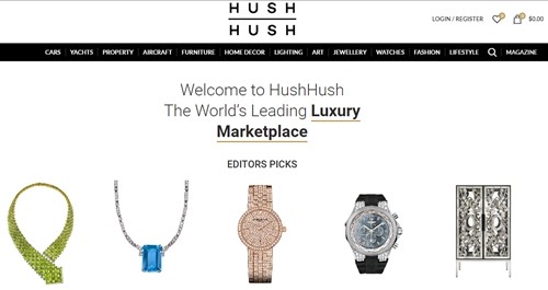 Các sản phẩm người này được thử rất đa dạng. Trên Hush Hush có hơn 200.000 mặt hàng, từ bất động sản đến siêu xe và máy bay cá nhân, theo Telegraph. Hiện tại, trang web này còn có du thuyền 47 triệu USD, một chiếc Ferrari FF-K Evo 4,5 triệu USD, một hòn đảo riêng tại Key Largo, Florida giá 87 triệu USD và đồng hồ Graff Hallucination 55 triệu USD nạm 110 carat kim cương đủ màu.