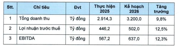Về cổ tức, Công ty sẽ tiến hành trả cổ tức năm 2025 tỷ lệ 6%/vốn điều lệ bằng tiền. Tỷ lệ cổ tức năm 2026 dự kiến 5-8%/vốn điều lệ bằng tiền.
