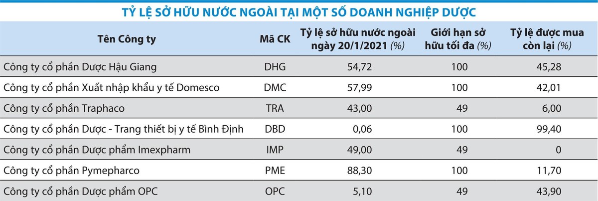 Tại Công ty cổ phần Traphaco (TRA), tỷ lệ sở hữu nước ngoài hiện ở mức 43,06%, trong đó, chủ yếu sở hữu bởi 2 tổ chức là Magbi Fund Limited có trụ sở ở Hồng Kông (25%) và Super Delta Pte Ltd có trụ sở ở Singapore (15%). Ông Kim Dong Hyu, thành viên Hội đồng quản trị TRA do Super Delta đề cử vốn là Trưởng đại diện văn phòng Việt Nam của Tập đoàn Dược phẩm DaeWoong (Hàn Quốc).