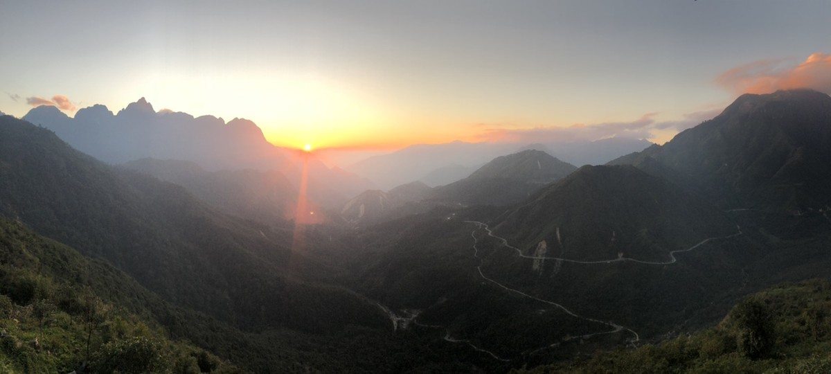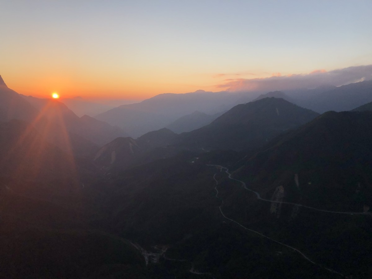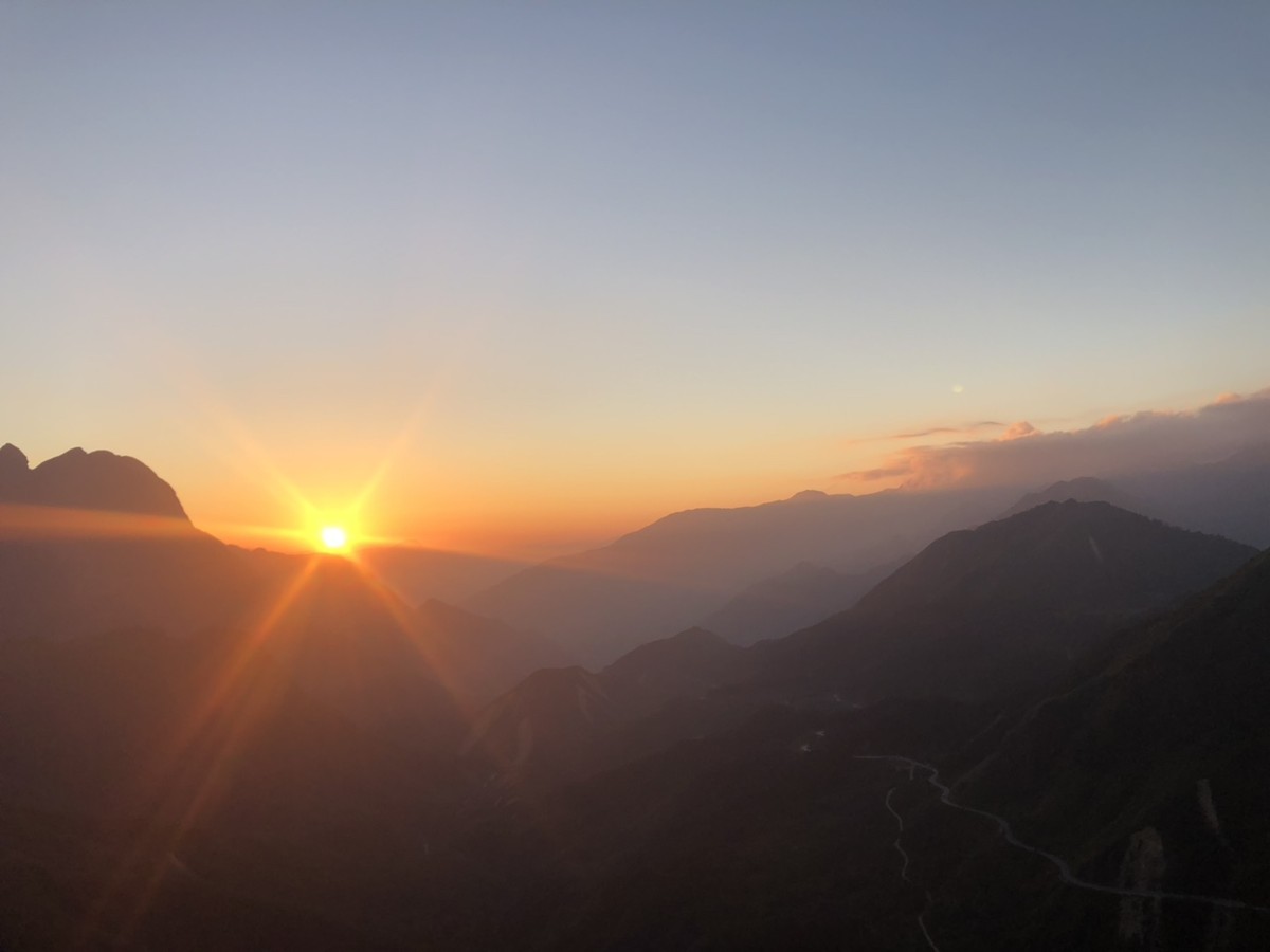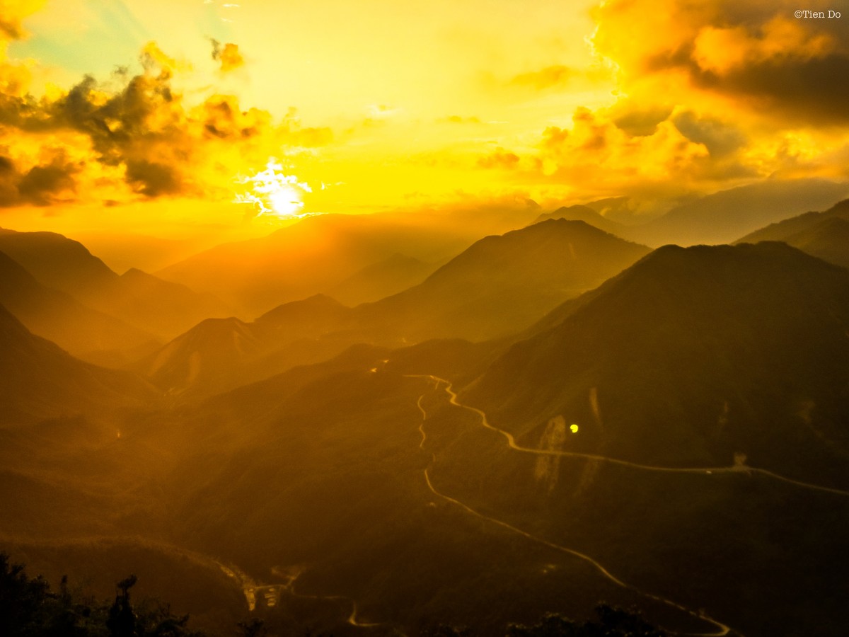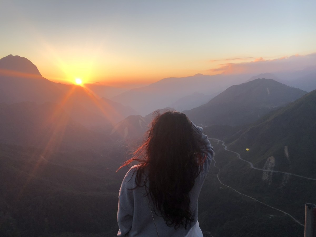 Đi khoảng 30 phút thì chúng tôi tới nơi, vừa kịp đón khoảnh khắc hoàng hôn buông xuống đẹp đến nghẹt thở. Trên đèo Ô Quy Hồ, Mặt Trời đang chói chang bỗng biến thành một quả hồng chín đỏ giữa nền mây trắng bồng bềnh. Bóng mặt trời dần phủ lên các ngọn núi đá biếc xanh đang vắt mình ngang qua những hẻm vực lớn. Mỗi ngọn núi lại mang một thứ tinh thần riêng biệt thông qua hình dáng, địa thế, hệ sinh thái... của mình. Tuy nhiên, cây cối của chúng thì lúc nào cũng tràn đầy sức sống. Dường như chúng muốn cố gắng xóa sạch mọi dấu vết mà con người đã hằn lên trên.