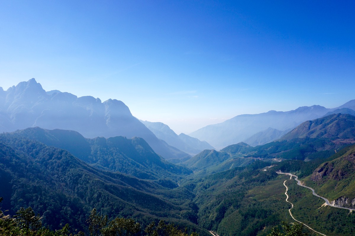 Rồi mắt tôi lạc đi giữa màu thẫm của lá phai và màu hoàng hôn sậm dần. Núi cũng như được nhuộm đỏ thẫm hơn dưới ánh nắng hoàng hôn. Vẻ đẹp hùng vĩ của con đèo như tan hết ra, lênh loang giữa trời, giữa đất. Màu đỏ rực của núi, màu đỏ thẫm của mặt trời quyện vào nhau như thể muốn đốt cháy hết vạn vật trên đời, kiêu hãnh cho đến giây phút sau cùng.