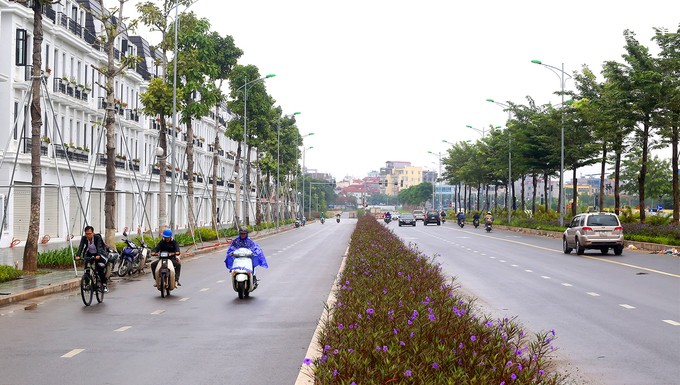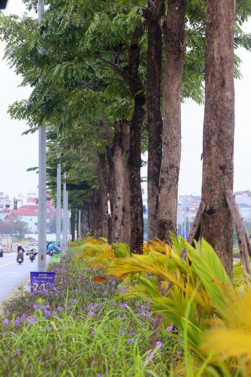 Trên vỉa hè, tuyến đường được trồng các loại cây xanh cao 3 đến 5 m.