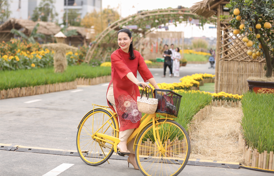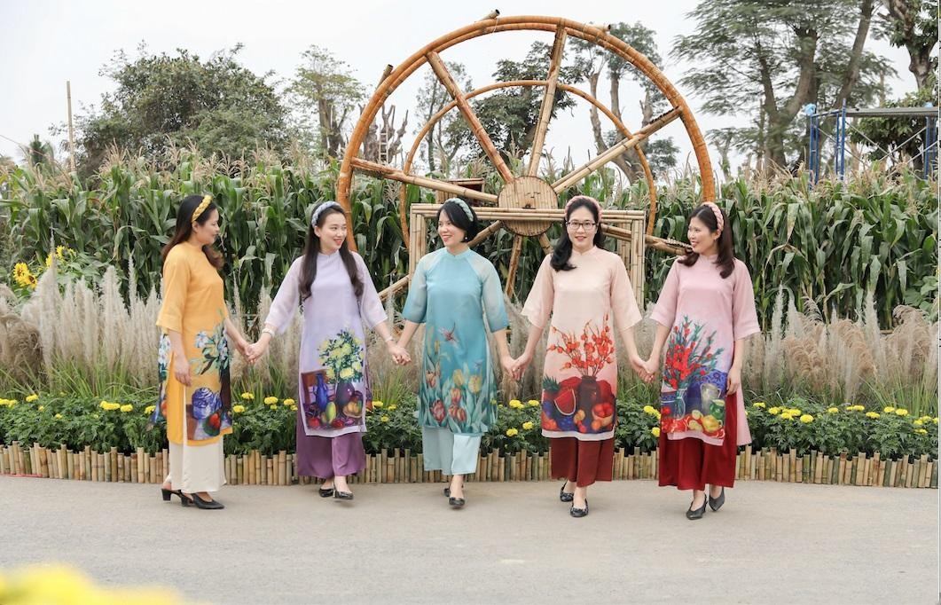 Những khu vực thu hút du khách nhất có thể kể đến vườn hoa hướng dương rực rữ, vườn violet tím mộng mơ tôn lên vẻ đẹp tà áo dài, hàng trăm gốc đào khoe sắc thắm, những khóm hoa bướm hồng tím dịu dàng và thêm vườn quất trĩu quả cho những ngày Tết no đủ, sum vầy.