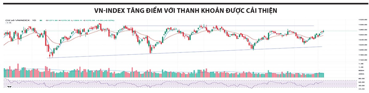 Dòng tiền lan tỏa giúp hầu hết các nhóm ngành tăng điểm tích cực, cùng với sự cải thiện đáng kể của thanh khoản khớp lệnh. Nhóm ngân hàng đóng vai trò dẫn dắt, đóng góp nhiều nhất vào đà hồi phục của chỉ số chung, giúp sắc xanh mở rộng ra nhiều nhóm cổ phiếu, đặc biệt là nhóm vốn hóa vừa và nhỏ. Nhờ đó, chỉ số VNMidcap và VNSmallcap tăng tốt hơn VN30; chỉ số HNX-Index và UPCoM-Index tăng cao hơn VN-Index.