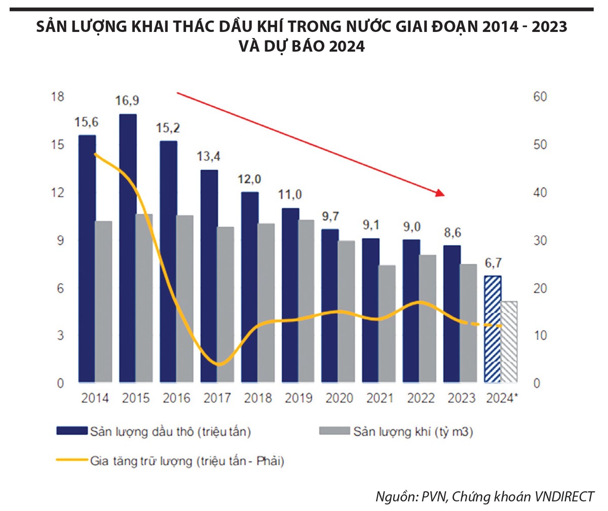 Tuy nhiên, với việc giá dầu thô hồi phục, Tập đoàn Dầu khí Việt Nam (PVN) lên kế hoạch đầu tư khoảng 49.200 tỷ đồng trong năm 2024, tăng xấp xỉ 57% so với năm 2023, trong đó đầu tư hơn 25.700 tỷ đồng vào khâu thượng nguồn.
