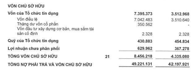 Về tài sản và nguồn vốn, tổng tài sản của EVF tại 31/12/2023 đạt 49.221 tỷ đồng, tăng 16,6% so với thời điểm 31/12/2022. Trong thời điểm cuối năm 2023, EVF đã thực hiện thành công việc tăng vốn điều lệ 1:1 cho cổ đông hiện hữu với giá phát hành 11.000 đồng/cổ phiếu và phát hành cổ phiếu lựa chọn cho người lao động (ESOP) với giá 10.000 đồng/cổ phiếu, dẫn đến vốn điều lệ của EVF tăng từ 3.510 tỷ đồng lên 7.042 tỷ đồng và lần đầu tiên, EVF có thặng dư vốn cổ phần, đạt 350,5 tỷ đồng. Việc tăng vốn điều lệ và có thặng dư vốn sẽ tăng tính chủ động của EVF trong việc sử dụng nguồn vốn chủ sở hữu, đồng thời, cải thiện rất lớn đến các hệ số tài chính và đặc biệt là hệ số an toàn vốn CAR của EVF.