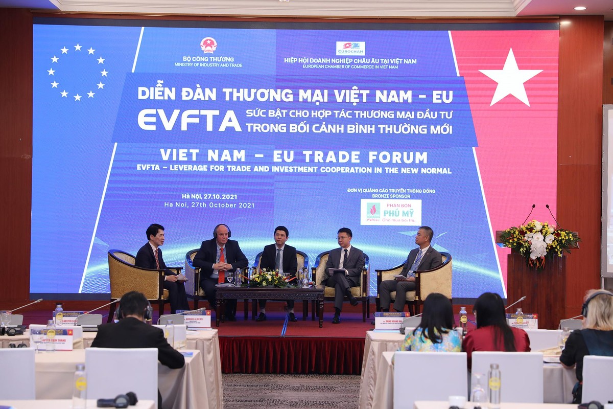 Chia sẻ tại Diễn đàn Thương mại Việt Nam - EU “EVFTA - Sức bật cho hợp tác thương mại đầu tư trong bối cảnh bình thường mới” do Bộ Công Thương phối hợp với Hiệp hội Doanh nghiệp châu Âu tại Việt Nam EuroCham tổ chức sáng 27/10/2021 với sự đồng hành của Tổng công ty Khí Việt Nam - CTCP; Tổng công ty Phân bón và Hoá chất Dầu khí - CTCP; Công ty cổ phần Tập đoàn Lộc Trời; Công ty TNHH Schaeffler Việt Nam, Thứ trưởng Bộ Công Thương Đặng Hoàng An cho biết, sau 1 năm chính thức có hiệu lực, Hiệp định EVFTA không chỉ là đòn bẩy thúc đẩy thương mại hai chiều, mà còn là lợi thế ưu việt cho cộng đồng doanh nghiệp hai bên trong bối cảnh kinh tế, giao thương toàn cầu bị ảnh hưởng nghiêm trọng do Đại dịch COVID-19 gây ra.