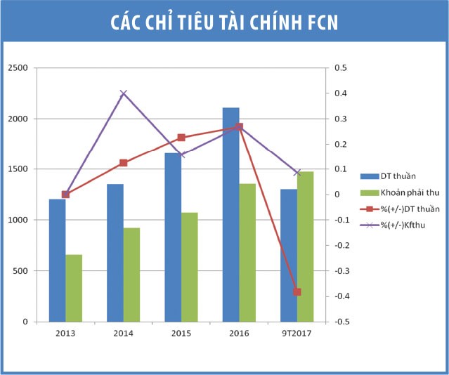 Nhìn lại các chỉ tiêu hoạt động của FCN trong giai đoạn 2013 - 2016, doanh thu thuần tăng trưởng khá tốt qua các năm. Trong đó, năm 2016, doanh thu thuần FCN đạt hơn 2.107 tỷ đồng, tăng 27% so với năm 2015.