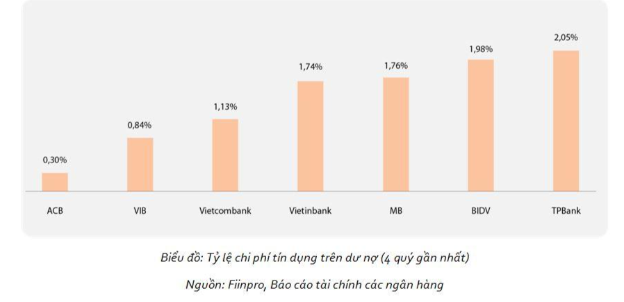 Một trong những điểm nổi bật là top 7 ngân hàng đều có chất lượng danh mục tín dụng chất lượng cao và an toàn với tỷ lệ nợ xấu được quản trị dưới 2%. Về chi phí tín dụng, có 2 ngân hàng kiểm soát dưới 1% trong nhiều năm qua là VIB và ACB so với trung bình thị trường ở mức 1,5% - 2,0%.