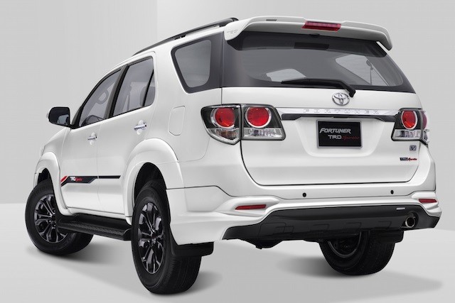 Ngoài ra, các chi tiết như cánh gió thể thao đuôi xe, bộ vành hợp kim 17-inch 6 chấu với 2 tông màu tương phản góp phần làm tăng sự ấn tượng và nét thể thao cho xe, chụp ống xả TRD mạ chrome giúp tạo điểm nhấn ở phía đuôi xe vẫn được duy trì trên phiên bản Fortuner TRD Sportivo 2015. Màu sơn trắng tuyết của Fortuner V TRD Sportivo vừa trang nhã, tinh tế; vừa tạo nên sự độc đáo so với các phiên bản Fortuner khác. Tem mác ‘TRD Sportivo’ trên cửa sau một lần nữa khẳng định sự khác biệt và cá tính của xe.