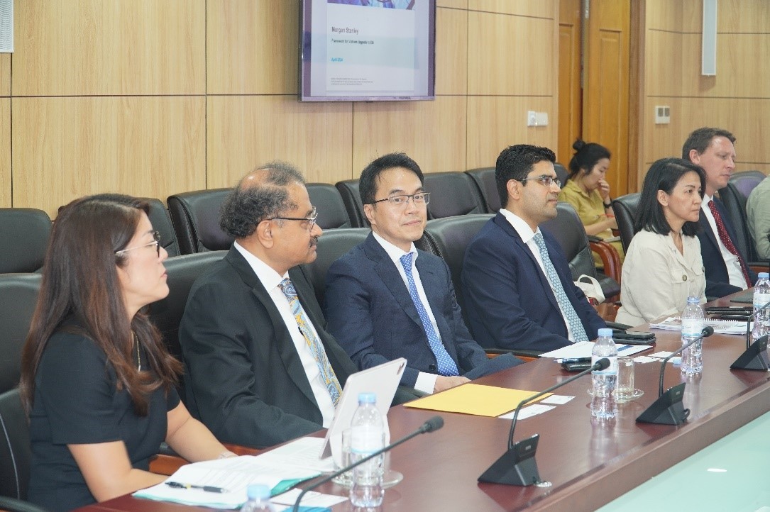 Về phía Morgan Stanley có bà Stella Jaeger - Đồng trưởng nhóm thị trường vốn Khu vực Đông Nam Á; ông Young Lee - Giám đốc điều hành khu vực châu Á về thị trường định chế; ông Kapil Trikha - Giám đốc điều hành khu vực Đông Nam Á; ông Pankaj Mataney - Trưởng bộ phận nền tảng kinh doanh và chiến lược chỉ số khu vực châu Á; ông Amitabh Chatterji – Trưởng bộ phận giao dịch hoán đổi Ấn Độ/ASEAN.