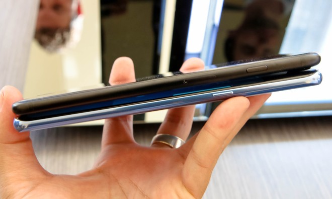 Galaxy S8 dày hơn iPhone 7 Plus khi máy có độ dày 8mm so với 7,3mm. Tuy nhiên, nhờ làm cong về hai cạnh nên khi nhìn từ cạnh qua, S8 cho cảm giác mỏng hơn.