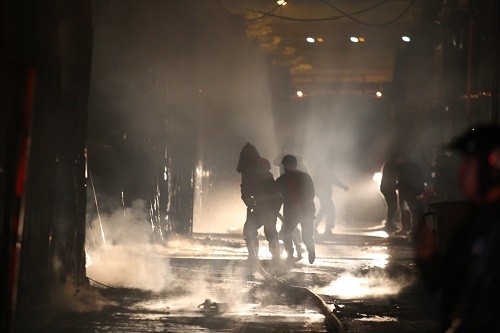 Đội Cảnh sát PCCC số 3 cũng điều 4 xe chữa cháy cùng hàng chục chiến sĩ tới dập lửa. Đến 23h, đám cháy cơ bản được khống chế, tuy vậy nhiều ôtô chưa kịp di tản bị cháy rụi. Toàn bộ kho đồ nội thất cũng bị lửa thiêu. Phần khung, mái che của khu xưởng đổ sập.
