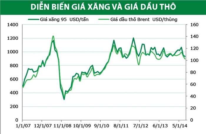 Tuy nhiên, theo quan sát của chúng tôi về biến động của TTCK gần đây, cách tác động của dầu thô đến thị trường đã thay đổi. Trước khi thị trường bị ảnh hưởng dầu thô, đều có những tín hiệu kiểm tra nguồn cung và tốc độ phát triển của nền kinh tế, sự thay đổi của TTCK càng về sau càng lệch nhịp hay chậm một nhịp với giá dầu. Giá dầu thô chủ yếu tác động đến diễn biến của giá cổ phiếu các công ty trong ngành dầu khí, mà không tác động mạnh tới toàn thị trường như trước. Từ 16/9/2014 đến nay, giá dầu đã giảm 14%, từ 100 USD/thùng xuống còn 85 USD/thùng, trong khi VN-Index giảm 7,2%, từ 628 điểm xuống 583 điểm.