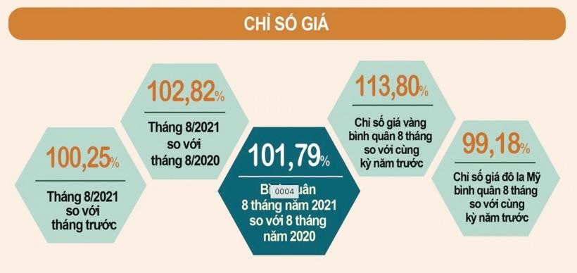 Chỉ số giá tiêu dùng bình quân 8 tháng năm 2021 tăng 1,79% so với cùng kỳ năm trước, mức tăng bình quân 8 tháng thấp nhất kể từ năm 2016.