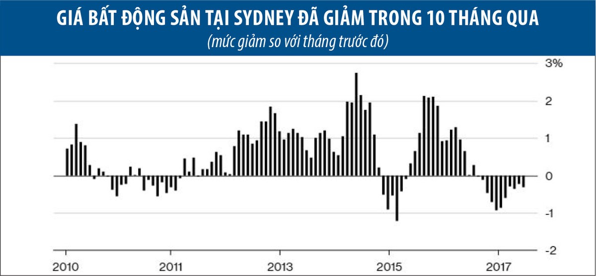 Giá nhà tại thành phố lớn nhất Australia đã giảm liên tiếp trong 10 tháng qua, dưới sự tác động của các chính sách kiểm soát đà tăng nóng của thị trường bất động sản. Trong đó, hiệu quả nhất là việc kìm cương tăng trưởng tín dụng nhà băng, lẫn cho vay ngoài thị trường dân sinh.