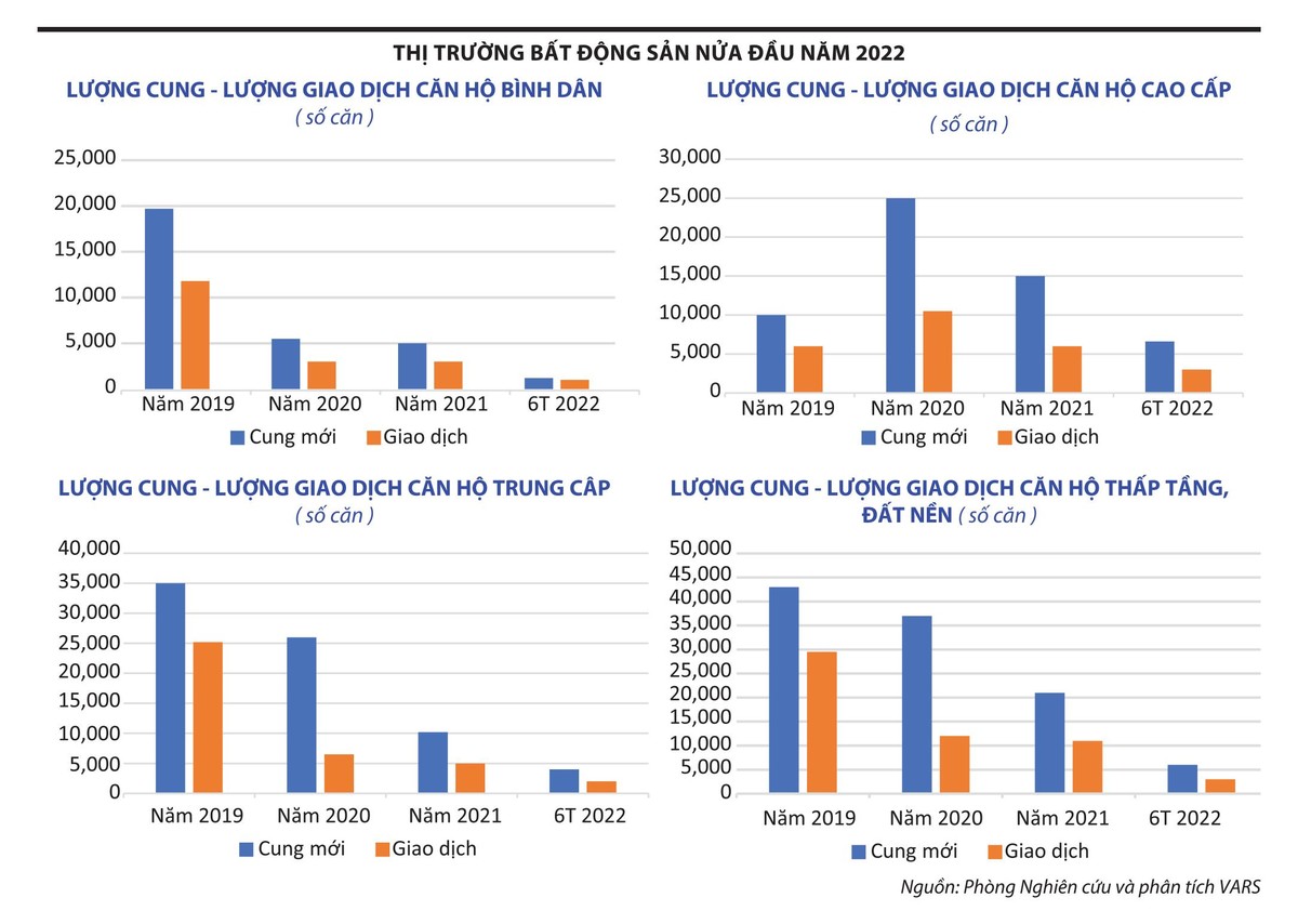 Ông Nguyễn Văn Đính, Chủ tịch Hội Môi giới bất động sản Việt Nam (VARS) còn đưa ra lưu ý, khi giao dịch giảm do tác động từ siết tín dụng hay các giải pháp “cứng” thì lượng tồn kho neo trên giá cao tăng mạnh, khiến nhiều doanh nghiệp đối diện nguy cơ “chết trên đống tài sản”.