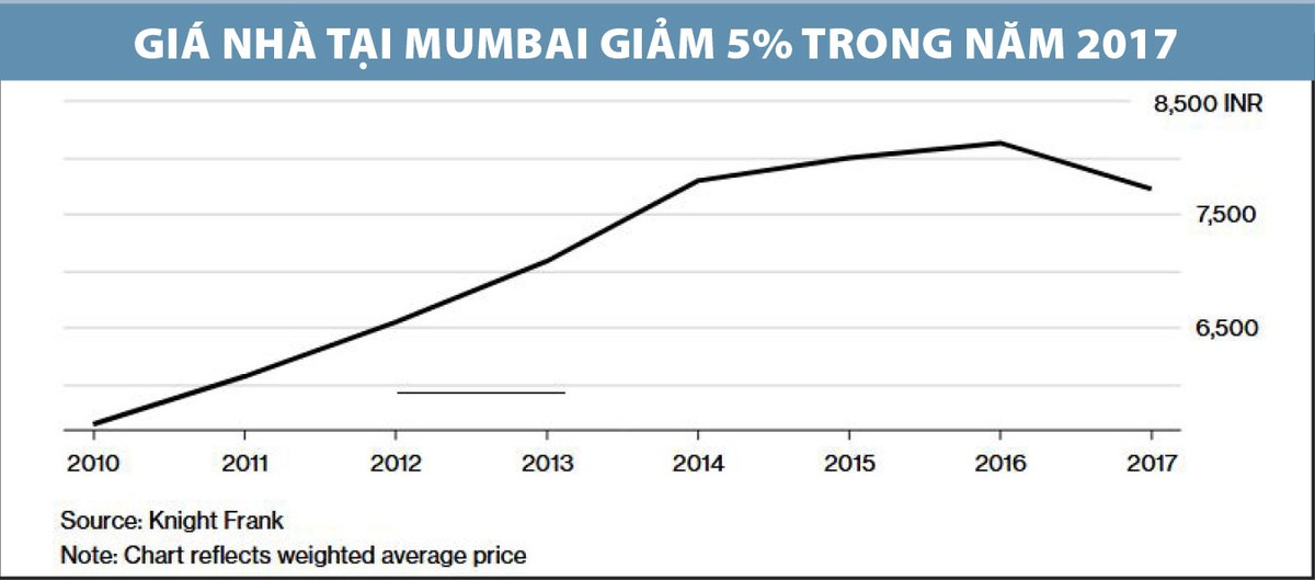 Năm 2017, giá nhà cơ sở tại Mumbai đã giảm 5%. Điều này đồng nghĩa với việc mức giá đến tay người mua có thể giảm tới 12%, nếu một số chính sách khuyến mãi được áp dụng.