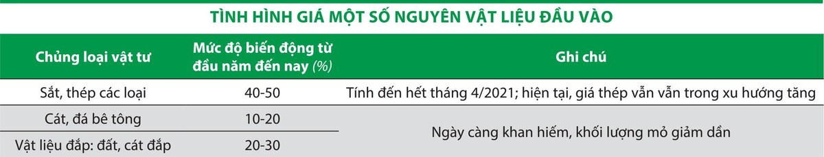 Việc giá nguyên vật liệu đầu vào tăng cao và nhanh trong thời gian ngắn làm phát sinh nhiều chi phí ảnh hưởng đến phương án tài chính của nhà thầu khi xây dựng giá chào thầu, làm cho doanh nghiệp bị giảm biên lợi nhuận và có nguy cơ bị thua lỗ khi triển khai dự án, đặc biệt đối với các dự án mà nhà thầu đã ký với chủ đầu tư theo hình thức trọn gói hoặc đơn giá cố định.