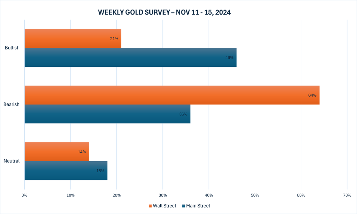 Tuần này, 14 nhà phân tích đã tham gia Khảo sát vàng của Kitco News và đợt bán tháo mạnh trong tuần này đã đẩy phần lớn Phố Wall vào triển vọng bi quan. Chỉ có ba chuyên gia, hay 21%, dự kiến giá vàng sẽ tăng trong tuần tới, trong khi chín nhà phân tích, hay 64%, dự đoán giá kim loại quý này sẽ giảm. Hai nhà phân tích còn lại, chiếm 14% tổng số, dự kiến giá vàng sẽ có giai đoạn củng cố.