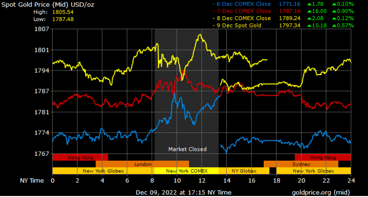 Giá vàng tương lai giao tháng 12/2022 trên sàn Comex New York tăng 9,2 USD lên 1.810,7 USD/ounce.