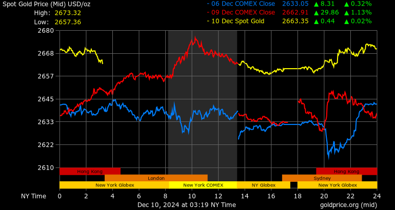 Trên thị trường vàng thế giới, giá vàng giao ngay chốt phiên hôm qua tại Mỹ tăng 27 USD lên 2.660,3 USD/ounce. Sang phiên châu Á sáng nay, giá vàng tiếp tục tăng 2,4 USD lên 2.662,7 USD/ounce.