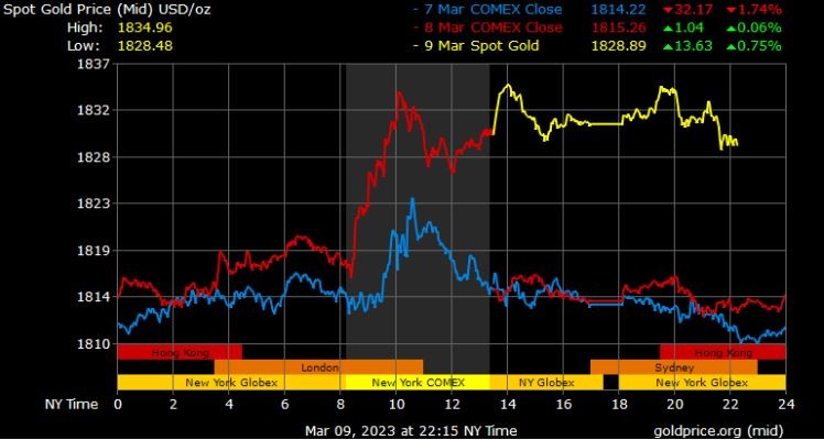 Giá vàng tương lai giao tháng 4/2023 trên sàn Comex New York tăng 16 USD lên mức 1.834,6 USD/ounce.
