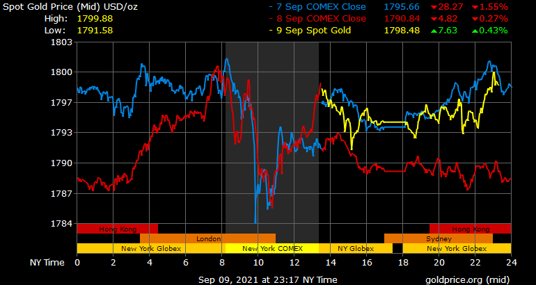 Giá vàng tương lai giao tháng 10 trên sàn Comex New York tăng không đáng kể lên 1.798,3 USD/ounce.