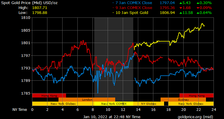 Giá vàng tương lai giao tháng 2/2022 trên sàn Comex New York tăng gần 8 USD lên 1.806,7 USD/ounce.