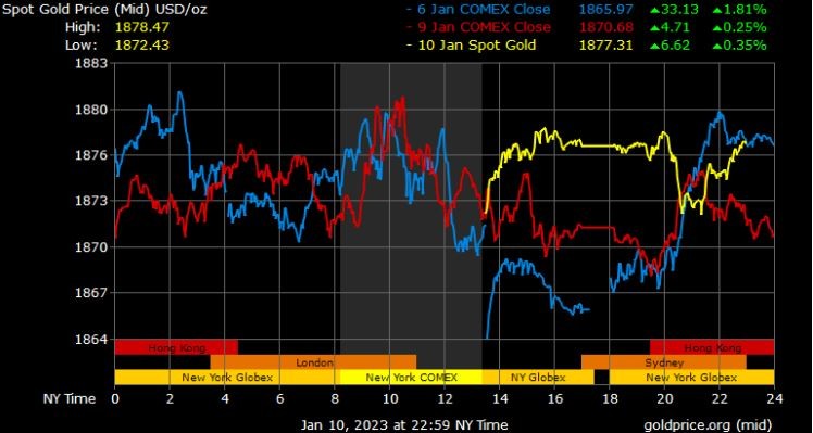Giá vàng tương lai giao tháng 2/2023 trên sàn Comex New York giảm 1,3 USD xuống 1.876,5 USD/ounce.