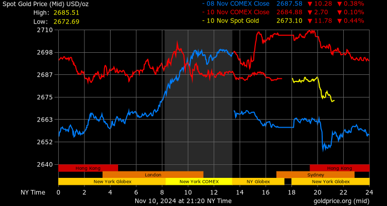 Giá vàng tương lai giao tháng 12/2024 trên sàn Comex New York giảm 11 USD, tương ứng giảm 0,41% xuống mức 2.694,8 USD/ounce.
