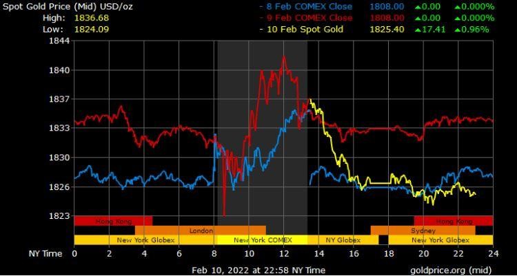 Giá vàng tương lai giao tháng 4/2022 trên sàn Comex New York tăng nhẹ 0,8 USD lên 1.837,4 USD/ounce.