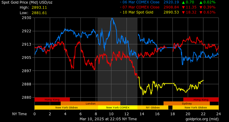 Giá vàng tương lai giao tháng 4/2025 trên sàn Comex New York giảm 4,7 USD, tương ứng giảm 0,5% xuống mức 2.899,4 USD/ounce.