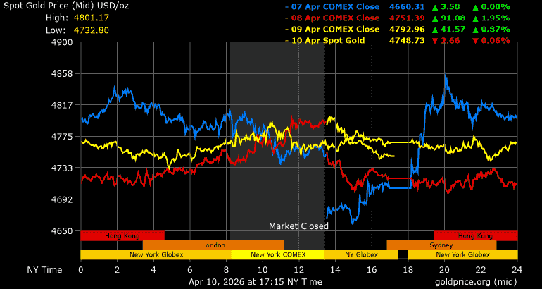 Trên thị trường vàng thế giới, giá vàng giao ngay chốt phiên hôm qua tại Mỹ giảm 15,7 USD, tương ứng giảm 0,33% xuống mức 4.749,7 USD/ounce.