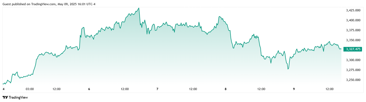 Giá vàng tương lai giao tháng 6/2025 trên sàn Comex New York tăng 38 USD, tương ứng tăng 1,15% lên mức 3.344 USD/ounce. Tính chung cả tuần, giá vàng giao ngay tăng 100,7 USD/ounce, tương ứng tăng 3,01%.