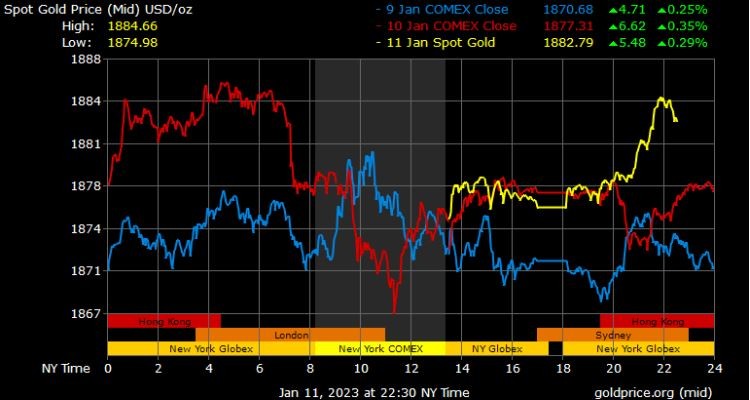 Giá vàng tương lai giao tháng 2/2023 trên sàn Comex New York tăng 2,4 USD lên 1.878,9 USD/ounce.
