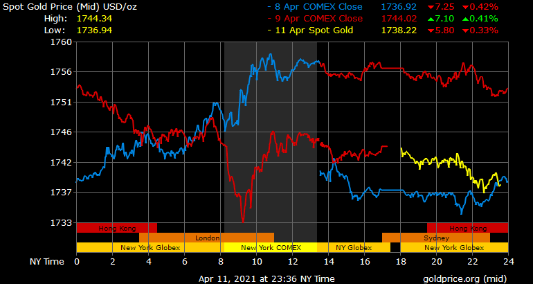 Giá vàng tương lai giao tháng 5 trên sàn Comex New York giảm 4,8 USD xuống 1.739 USD/ounce.
