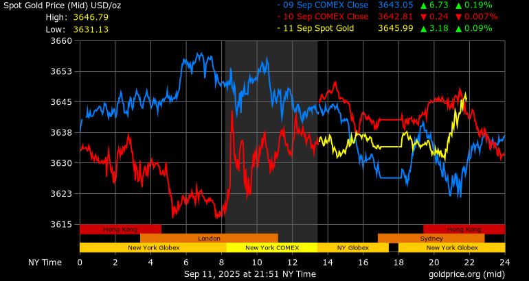 Trên thị trường vàng thế giới, giá vàng giao ngay chốt phiên hôm qua tại Mỹ giảm 6,5 USD xuống mức 3.634,1 USD/ounce. Sang phiên châu Á sáng nay, giá vàng đảo chiều tăng 11,6 USD lên 3.645,7 USD/ounce.
