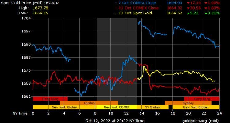 Giá vàng tương lai giao tháng 12/2022 trên sàn Comex New York giảm 8,5 USD xuống mức 1.677,5 USD/ounce.