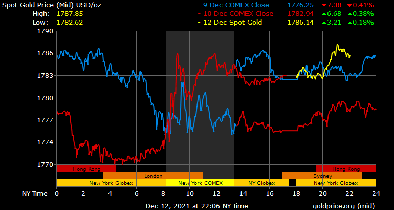 Giá vàng tương lai giao tháng 1/2022 trên sàn Comex New York tăng hơn 2,5 USD lên 1.786,4 USD/ounce.