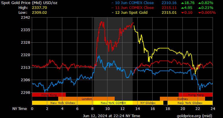 Trên thị trường vàng thế giới, giá vàng giao ngay chốt phiên hôm qua tại Mỹ tăng 8,1 USD lên 2.325 USD/ounce. Sang phiên châu Á sáng nay, giá vàng đảo chiều giảm 9,4 USD xuống 2.315,6 USD/ounce.